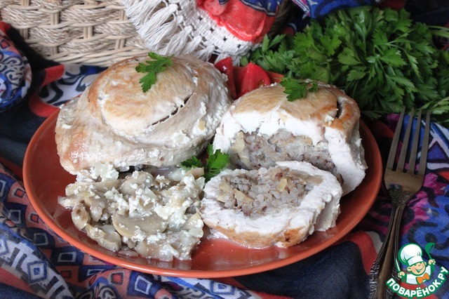 Рецепт "Кармашки из куриной грудки с гречкой и грибами в мультиварке":