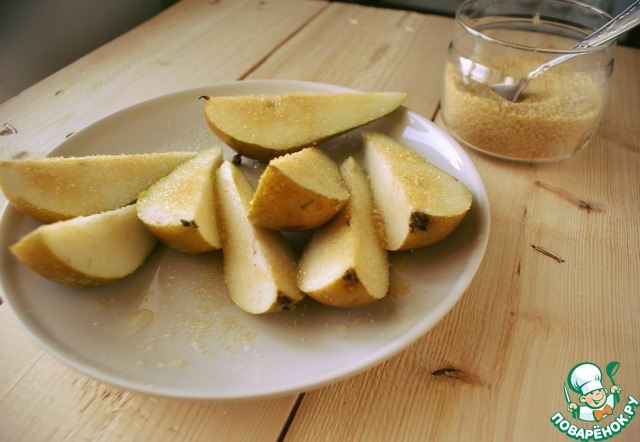 Груши лучше взять плотные. Разрезать на четвертинки.