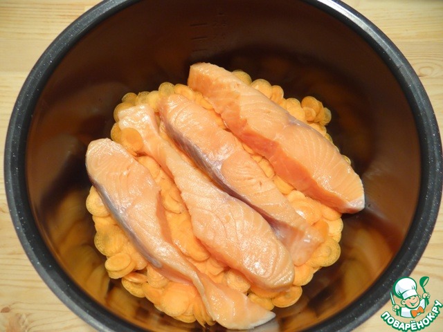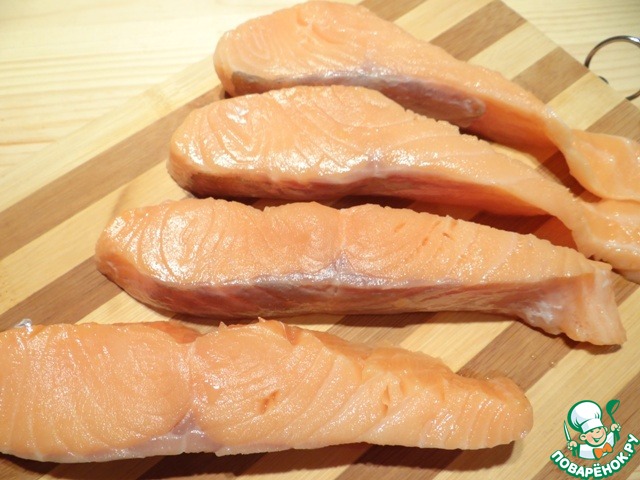 Это блюдо я с приготовила в замечательной мультиварке Vitek VT-4205 ВК. Семгу разделываю на филе, мою и нарезаю на порционные кусочки.