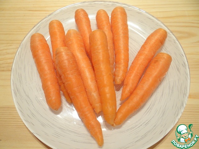 Для этого блюда я взяла сочную, но маленькую морковь. Морковь чищу, мою.