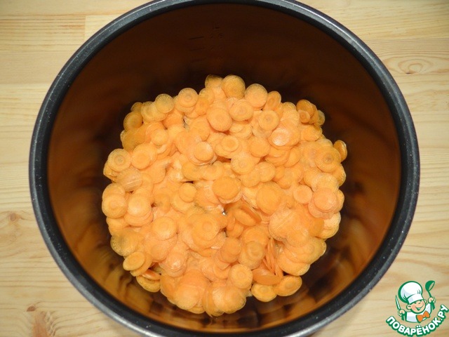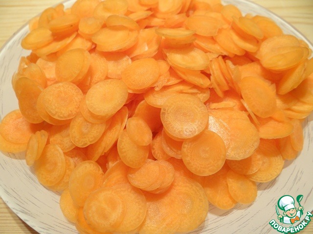 Нарезаю морковь с помощью специальной терки на очень тонкие кружочки.