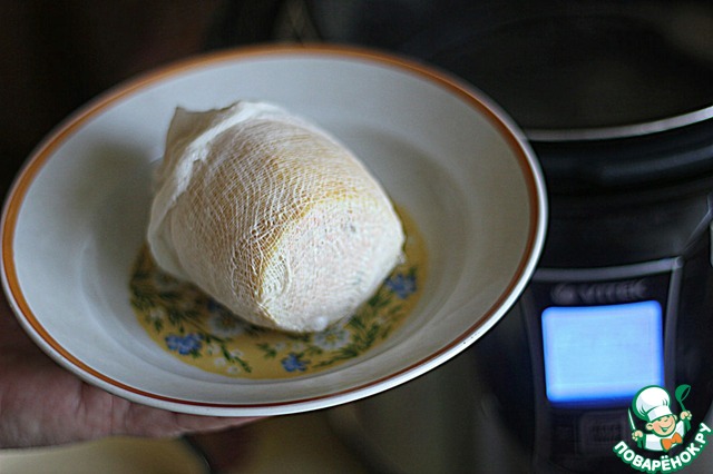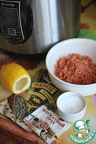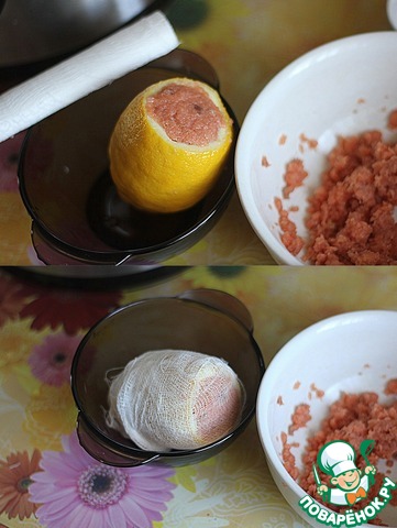 Заполнить лимон полученной массой, завернуть в марлю. У меня осталось немного рыбного фарша и я приготовила из него рыбный бульон (в режиме "Cake" 7 минут), процедила.
