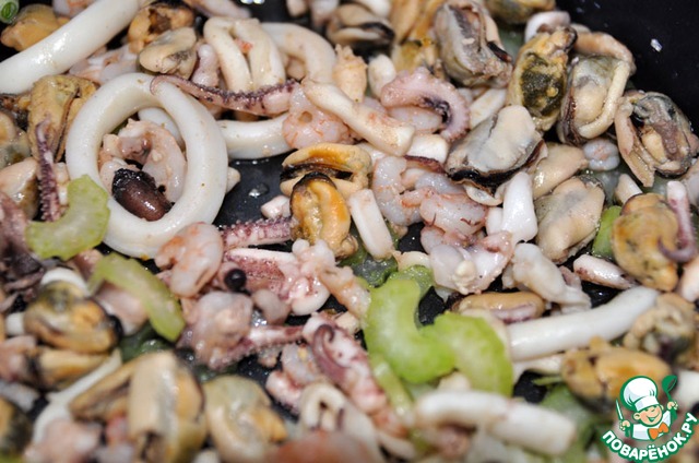 Рецепт "Морской коктейль тушёный в белом сухом вине":