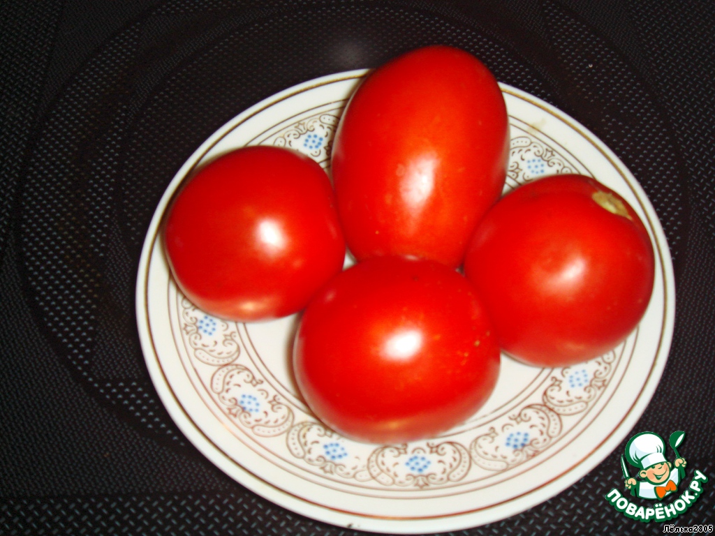 Нарезаем помидоры и выкладываем сверху, солим, перчим снова.