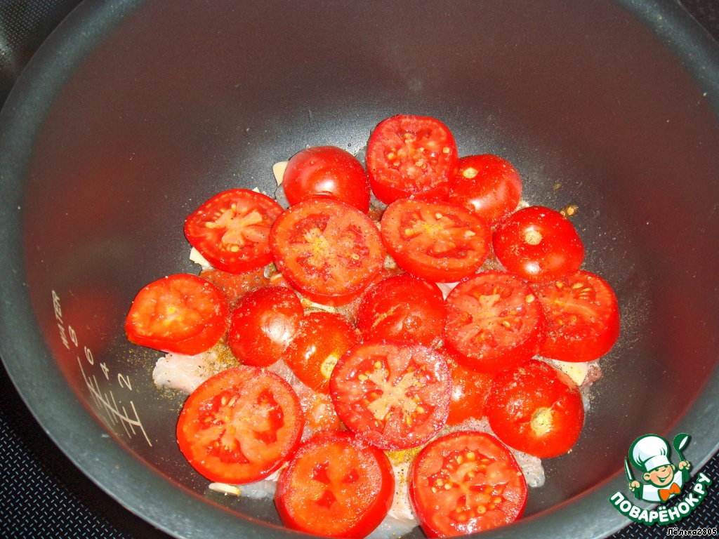 Посыпаем сверху. Ставим в мультиварку на режим "Тушение, томление" на 30-35 минут или в разогретую духовку.