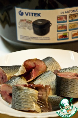 | Для этого рецепта я бы рекомендовала брать сельдь, скумбрию или мелкую рыбку. В последнем случае результат будет напоминать кильку в томате. При долгом тушении косточки становятся очень мягкими как в консервах. Готовим в мультиварке Vitek VT-4205 BK. |