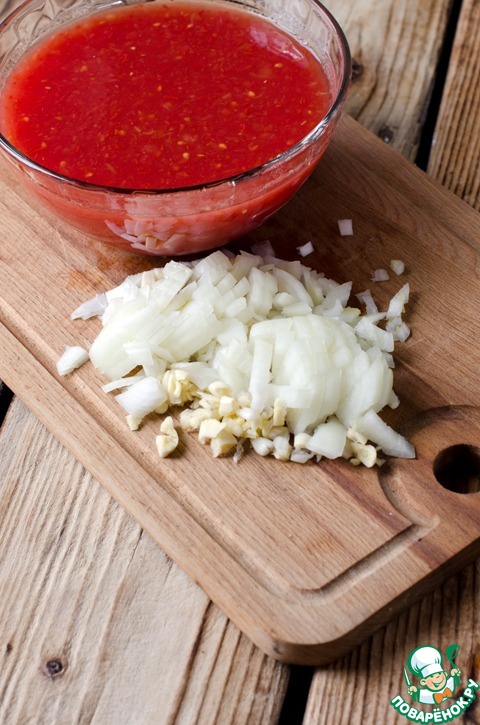 Для этого надо очистить и мелко нарезать лук и чеснок.