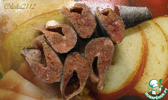Далее порционные кусочки рыбы сбрызнуть лимонным соком, поперчить, посолить, посыпать тимьяном и дать "отдохнуть" минут 20.