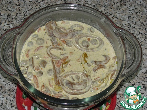 | Очень мягкие, нежные кальмары, приготовленные в сливках, имеют сладковатый сливочный вкус, прекрасно сочетаются с рисом и другими крупяными гарнирами. |