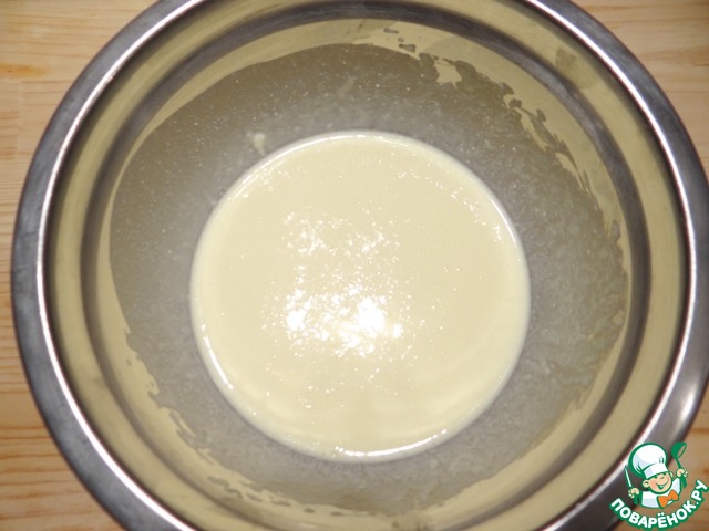 Добавляю в кашу сметану, взбитую с яйцами, небольшими порциями, постоянно помешивая.