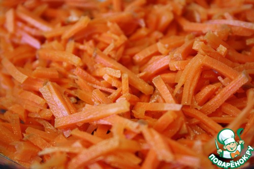 На оставшемся масле, после готовки фрикаделек, обжарить морковь с луком, присыпав куркумой.