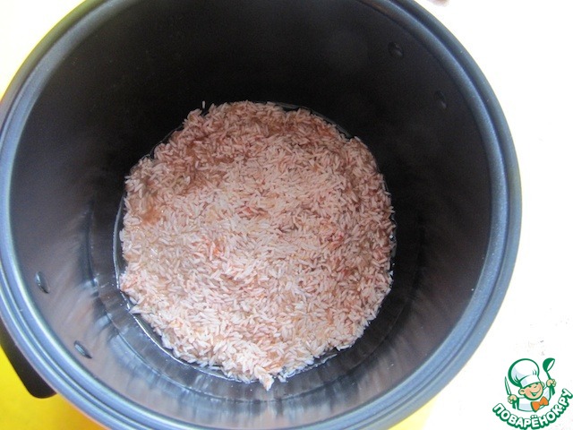 2/3 части подготовленного риса выложить в чашу мультиварки.