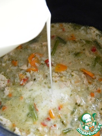 По истечению 20 минут, открыть крышку, влить сливки и посолить. Перемешать и доварить суп.