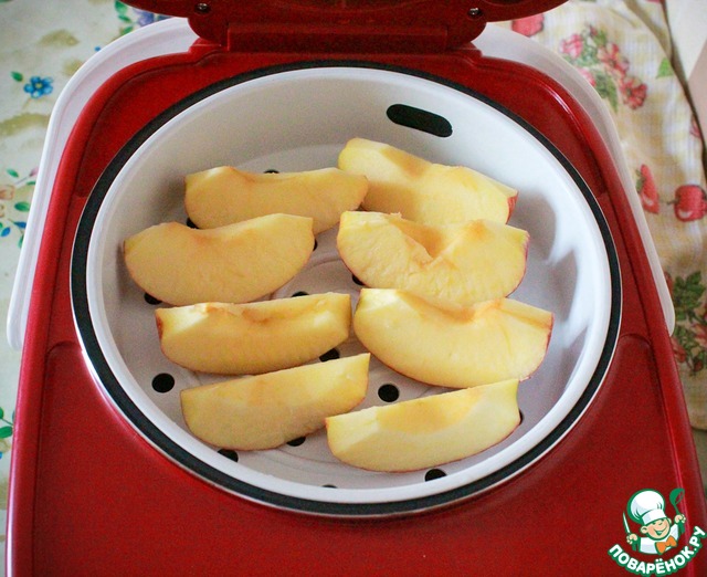Ставим чашу с яблоками в мутиварку, и яблоки готовятся на пару вместе с кашей.