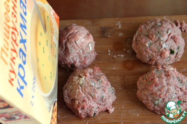 Защипнуть колобок и обвалять в кукурузном крахмале.