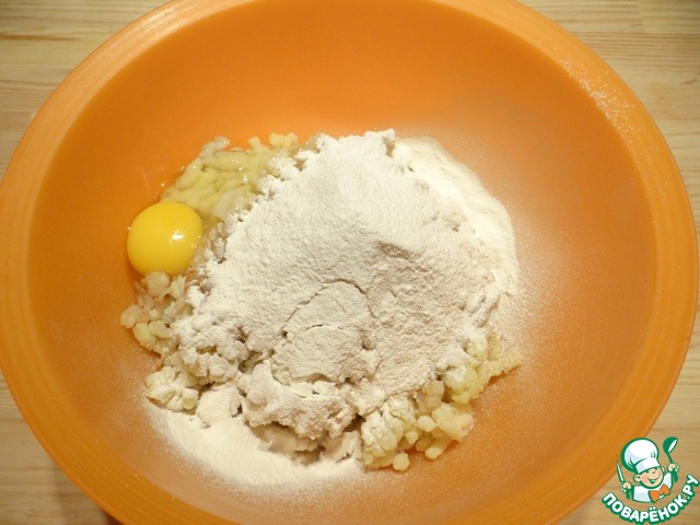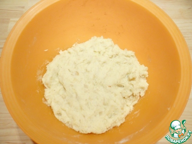 Замешиваю картофельное тесто. Муки может уйти чуть больше (это зависит от сорта картофеля), но больше одного стакана добавлять не следует.