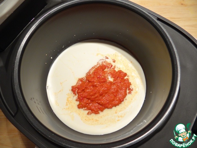 Соус перемешиваю и даю ему закипеть. Соус выливаю в миску, а чашу мультиварки мою и вытираю насухо.