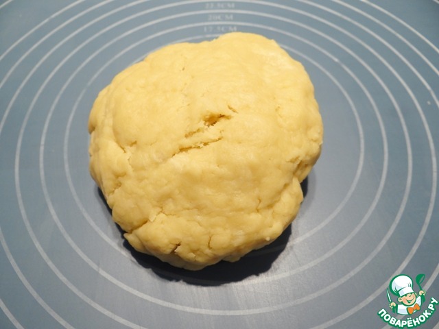Замешиваю тесто из просеянной муки, размягченного сливочного масла, соли и воды. Тесто помещаю в пакет и убираю в холодильник примерно на час-два.