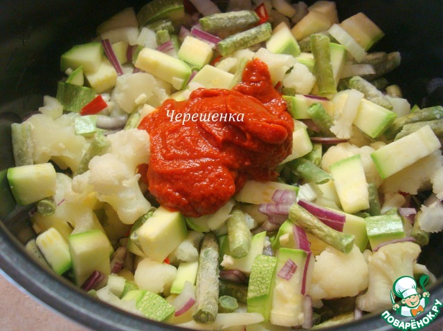 | Вот это блюдо действительно готовится в одно касание. Быстренько режем все овощи и грибы, закладываем в мультиварку Vitek VT-4215 BW и нажимаем кнопочку. Все, остается только немного подождать результата. Это блюдо индийской кухни, очень острое! Но если вы не большой любитель остренького, то остроту можно легко отрегулировать количеством красного жгучего перчика, можно даже вообще от него отказаться. Также это блюдо хорошо тем, что можно варьировать виды овощей по вашему вкусу и настроению. |