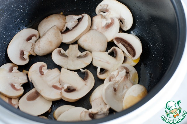 Как только перцы будут готовы, вытащить их и уложить в мультиварку шампиньоны, посолить и тоже запекать оставшееся время, опять таки не забывая их перевернуть на другую сторону.