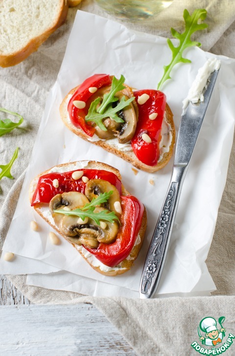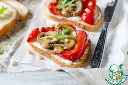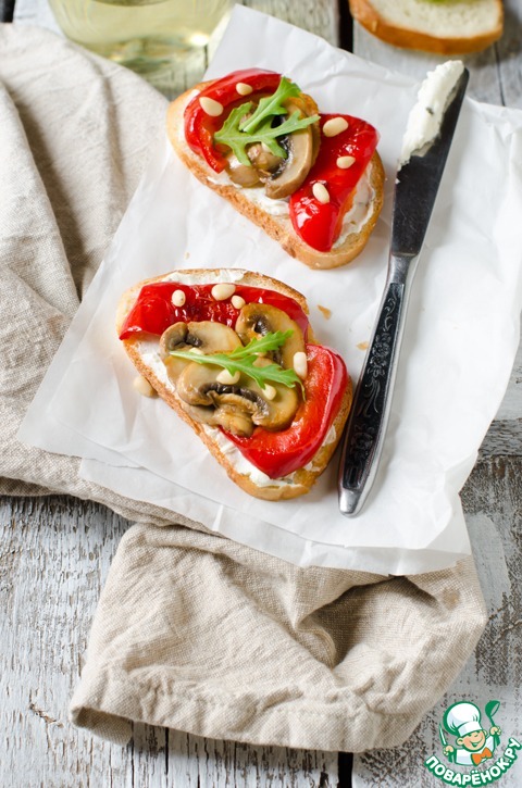 Рецепт "Тосты с творожным сыром и запеченными овощами в мультиварке":