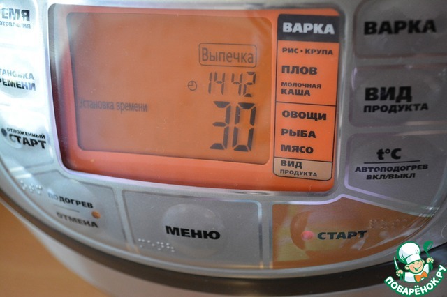 Ставим чашу в мультиварку и ставлю режим "Выпечка" - 30 минут.