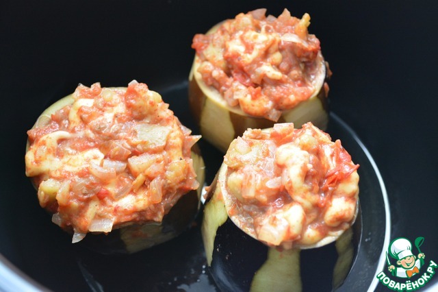 Рецепт "Баклажаны, фаршированные помидорами и сыром в мультиварке":