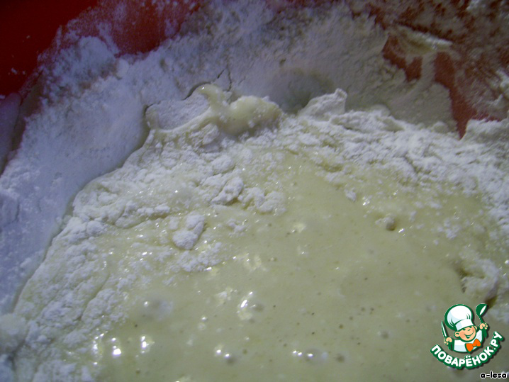 Начинать вымешивать тесто можно ложкой, плавно, затем домесить руками, тесто должно получиться очень мягким, но не липнуть к рукам.