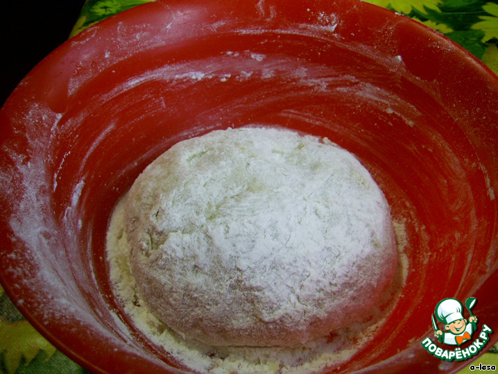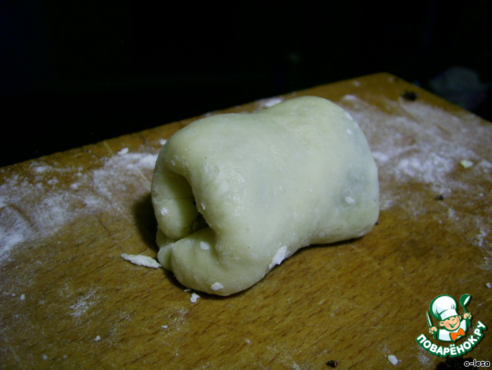 чуть макая в муку (руки жиром не смазываю).