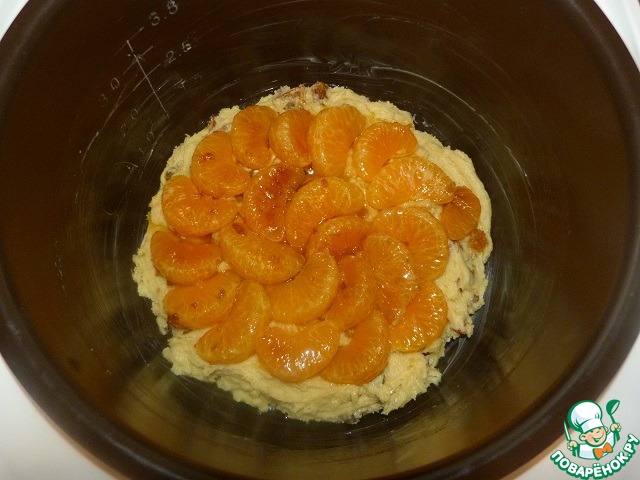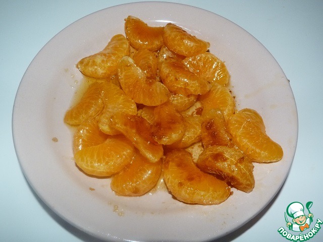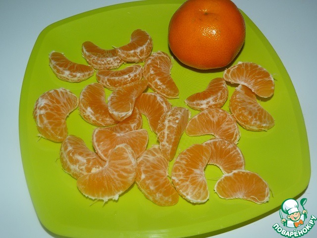 Мандарины очистить, разобрать на дольки и оставить подсыхать на 1 час.