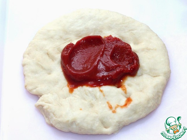 Делим тесто на две части. Одну часть кладем в миску, а в другую вмешиваем 1 ст. л. томатной пасты. Если нужно, добавляем муку, хорошо вымешиваем, так, чтобы тесто не липло к рукам, и убираем в миску. Пальцы можно смазать растительным маслом.