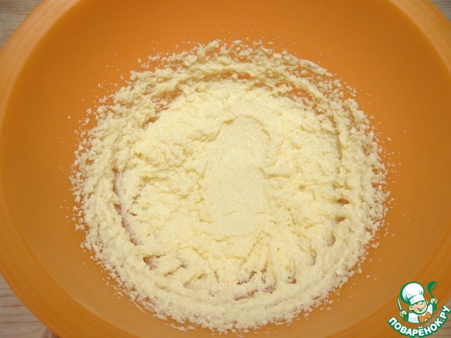 Сливочное масло взбиваю с половиной сахарного песка миксером.