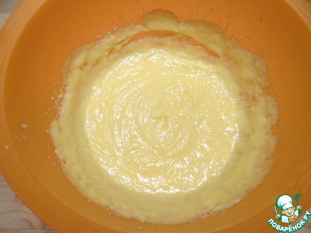 К масляной массе добавляю желтки, массу снова чуть взбиваю.