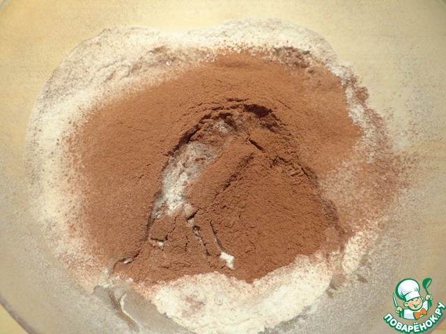 Муку просеиваю с разрыхлителем и какао-порошком.
