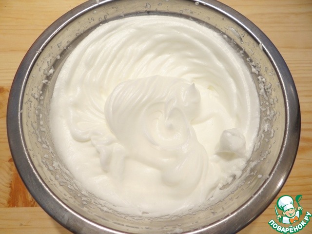 В отдельной миске хорошо взбиваю белки со щепоткой соли, постепенно добавляя оставшийся сахарный песок.