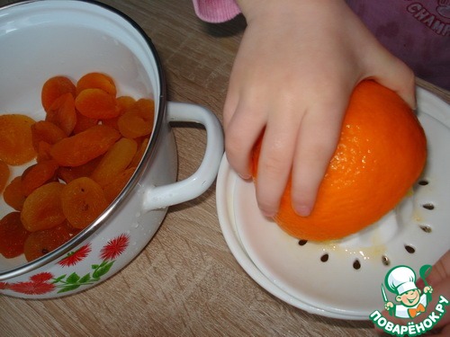 А пока займемся начинкой. Выжмем апельсиновый сок и сок с лимона.