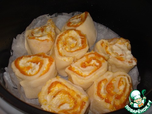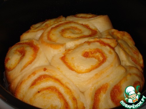 Ставим в мультиварку и включаем режим "Мультиповар" при температуре 35 градусов на 15 минут, если у вас нет этого режима, просто дайте булочкам минут 20 подойти в форме, а потом только выпекайте..