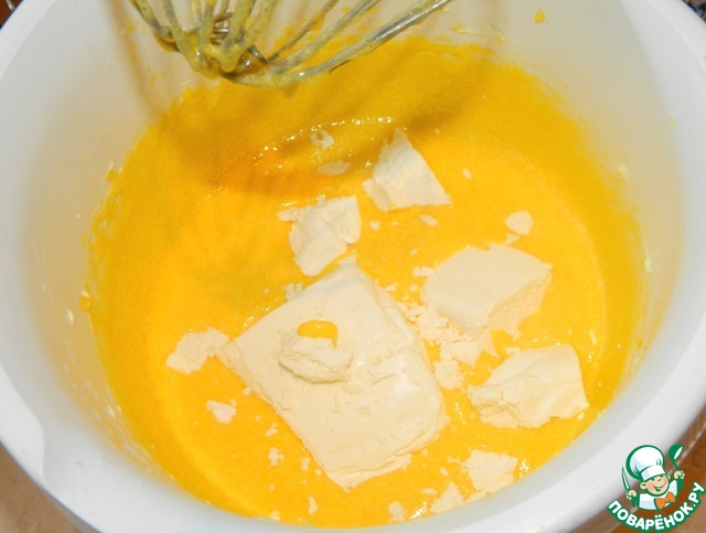 Для бисквита взбиваем желтки с сахаром. Добавляем майонез Махеев.