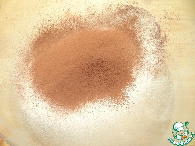 Муку просеиваю с разрыхлителем и какао-порошком.