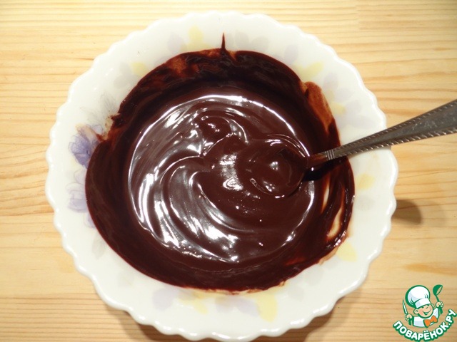 Шоколад вместе со сливочным маслом нагреваю в микроволновке, время от времени перемешивая, до полного растворения шоколада. Покрываю пирог глазурью. Приятного Вам аппетита!