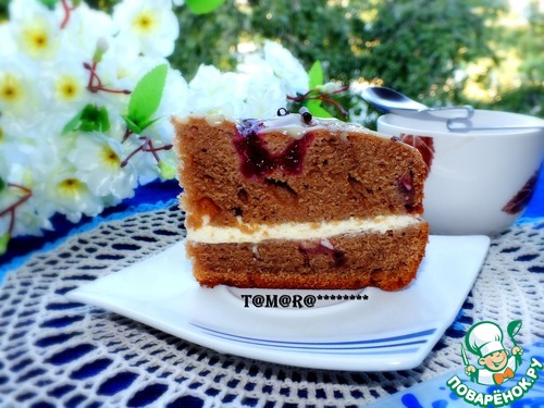 | Вкусный, ароматный, шоколадный кекс с приятной вишневой кислинкой - так можно охарактеризовать этот кекс. Ну, а прослойка из крема делает его похожим на тортик. |