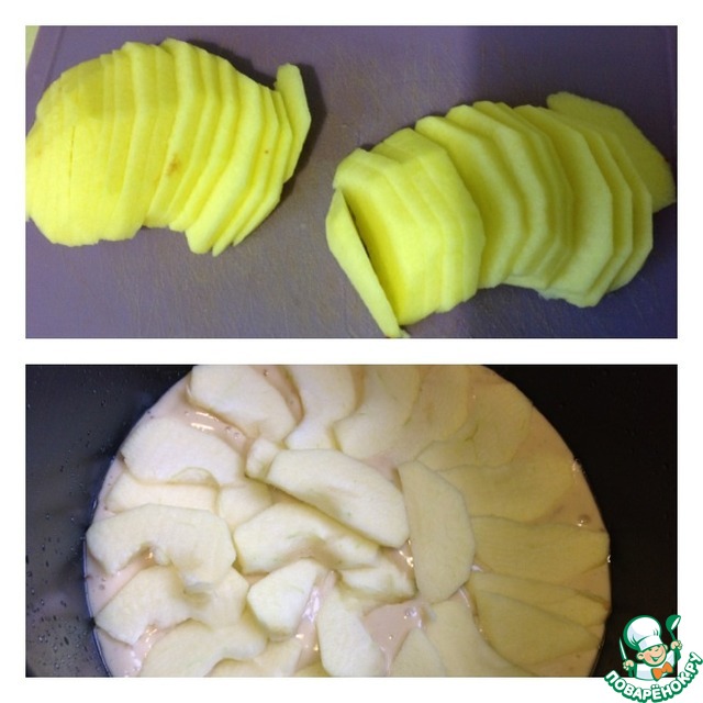 Яблоко очистить от кожуры и семян, тонко нарезать пластинками. Выложить сверху на тесто. Выпекать на режиме ВЫПЕЧКА 75 мин. Готовый пирог остудить и если есть желание, то украсить по своему усмотрению. Но аромат настолько яркий стоит, что я не успеваю сделать украшение, как мои маленькие троглодиты начинают снимать дегустацию)))