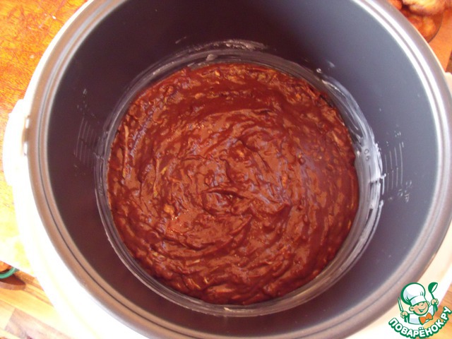 Выливаем наше тесто в мультиварку и выставляем режим "выпечка" на 60 минут.