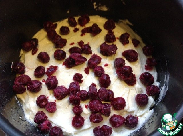 Вишню выкладываем на тесто. Выпечка 70 мин.