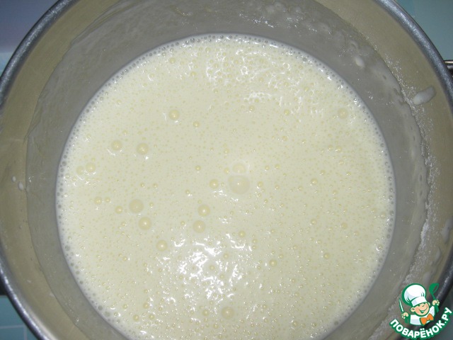 Приготовим заливку. Всё ингредиенты для заливки смешиваем и взбиваем миксером.