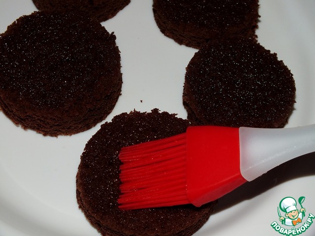 Пропитываем наши заготовки сиропом (я брала сироп с консервированного персика)