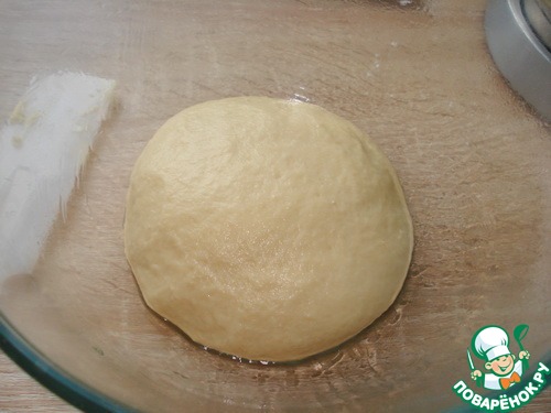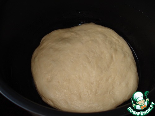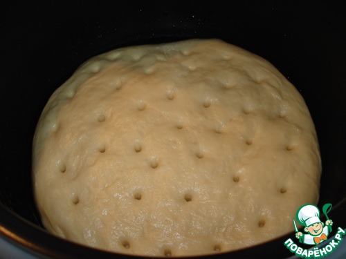 Подошедшее тесто раскатаем в круг и выложим в чашу мультиварки.