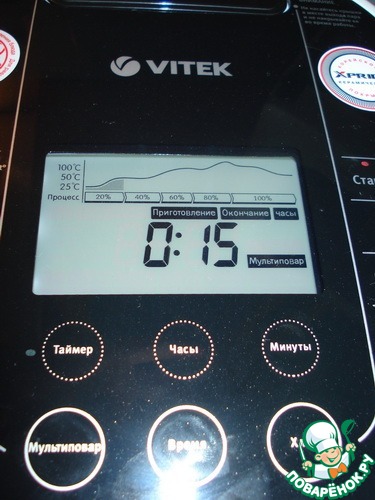 Потом включаем режим "Выпечка " Выпекаем 25 минут на одной стороне, потом переворачиваем и выпекаем еще 15.