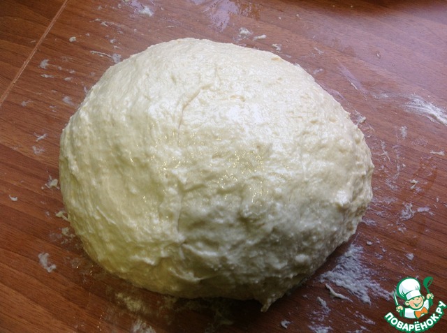 Через 15 мин тесто всплывает, оно готово. Формируем из теста шар