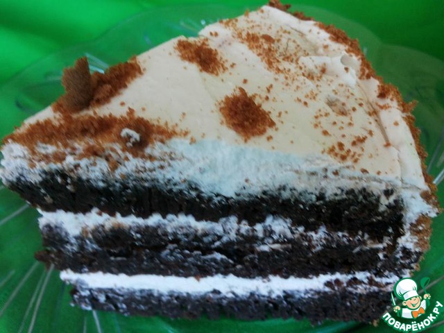 Так же обмазала со всех сторон весь торт взбитыми сливками. А украшать не стала- просто через трафарет обсыпала крошками темного бисквита ( имеются таковые в запасниках).